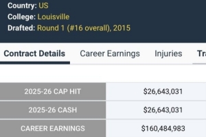 美媒Hoop Herald晒出罗齐尔生涯薪资,算上本赛季的2664万,罗齐尔生涯的总薪资超过了1.6亿美元。