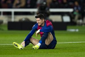 体育资讯10月24日讯 据塞尔电台Què T'hi Jugues报道,巴萨前锋莱万的伤势恢复进展非常顺利,巴萨队医昨天对他的康复速度感到惊讶。