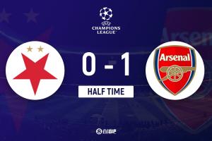 半场-阿森纳暂1-0布拉格斯拉维亚 普罗沃德手球送点萨卡点射破门